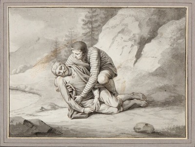 Ingi Baardsen and Raadolf. Signed E. Verso inscribed Ingi Baardsen, E del 1807. Drawing ink and wash on paper. Sheet size 187×247 mm. | |