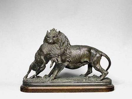 | LION TENANT DANS SA GUEULE UN SANGLIER | |
