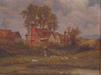 Farmstead with livestock and figure
