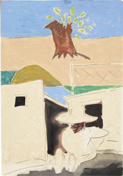 Graphite ink, gouache, watercolor, and pastel on papeR