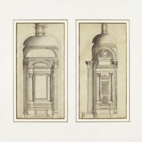 TWO ARCHITECTURE DRAWINGS REPRESENTING THE CHAPEL AND THE ALTARPIECE OF SIGNOR GAVOTTI IN THE CHURCH OF S. NICOLA DE TOLENTINO