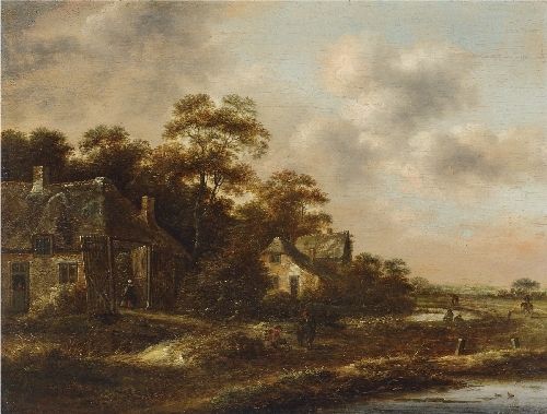 DUTCH LANDSCAPE WITH FARMSTEAD AND PEASANTS