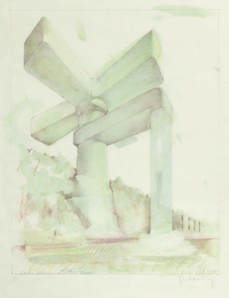 Proposal for a Cathedral in the Form of a Sink Faucet for Lake Union, Seattle, Washington; Proposed Colossal Monument for Alcatr