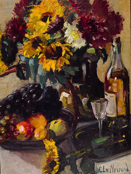 üppiges Stilleben mit Blumen,Früchten und Wein