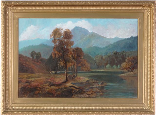 | Scottish Loch at Dusk, an autumn landscape with mountains in the background | |