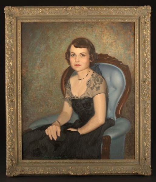 Portrait of a Lady Wearing a Black Dress with Embroidered Net Cape