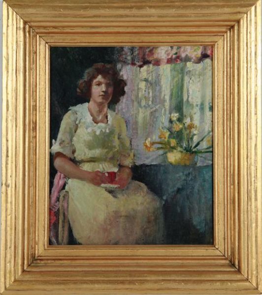 LADY IN INTERIOR WITH SPRING FLOWERS