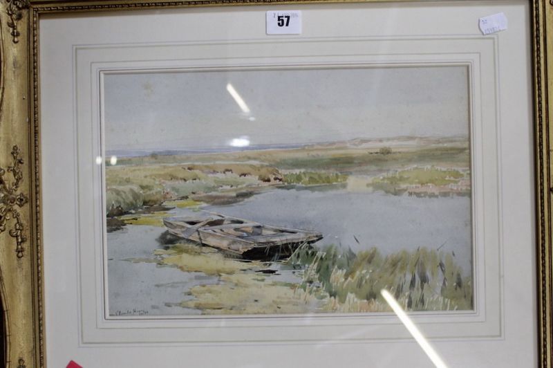 A marshland scene with rowing boat