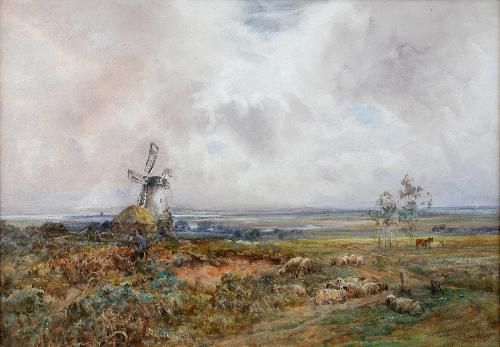 | A Windmill and a Hayrick by the Sea, with Sheep and Cattle in the Foreground | |