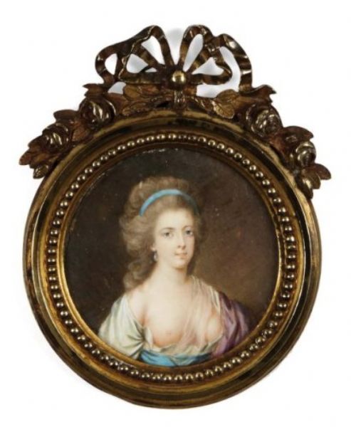 Portrait de jeune femme en déshabillé, la poitrine dévêtue