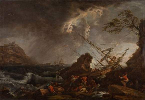 Mediterrane Küstenlandschaft mit Schiffbrüchigen