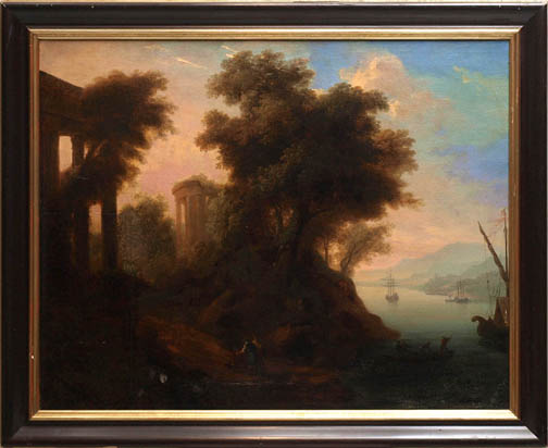 Weite, idealisierende Landschaft mit tief eingeschnittener Bucht