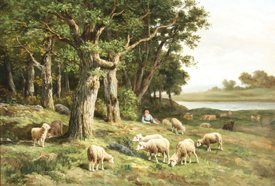 A Shepherdess with Her Flock