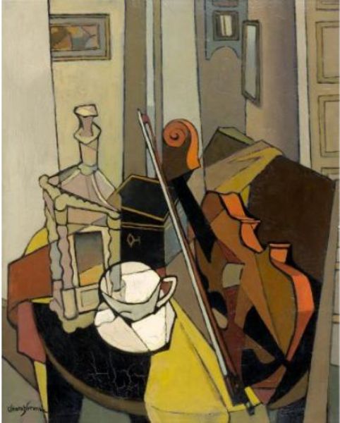 NATURE MORTE AU VIOLON ET BOUTEILLE