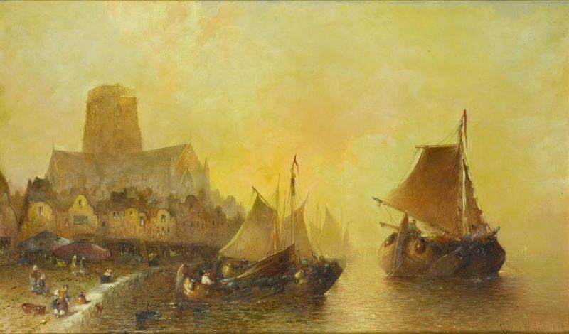 A DUTCH HARBOUR AT DAWN