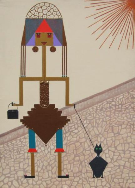 Citadine avec sac et chat.