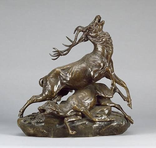 A bronze model of a stag and dead hind
