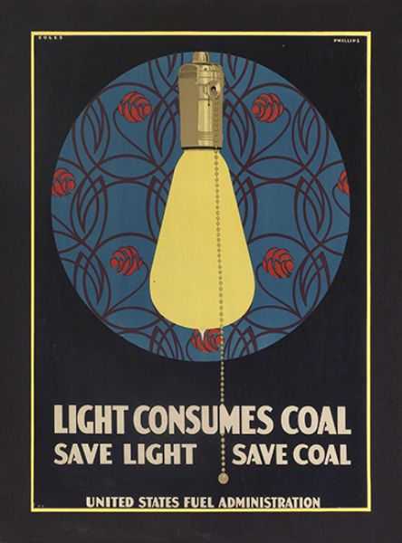 LIGHT CONSUMES COAL. Circa 1918
