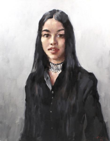 | Half length portrait of a young woman wearing a black jacket | |