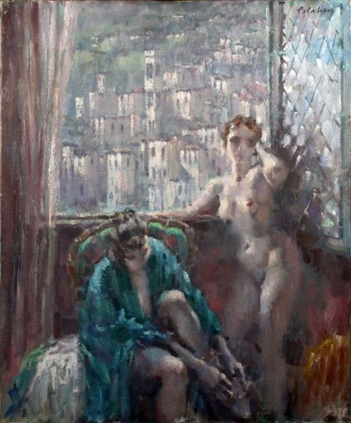 | Interior scene with two nude female figures before a window | |