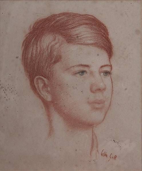 a red conte portrait study of a boy