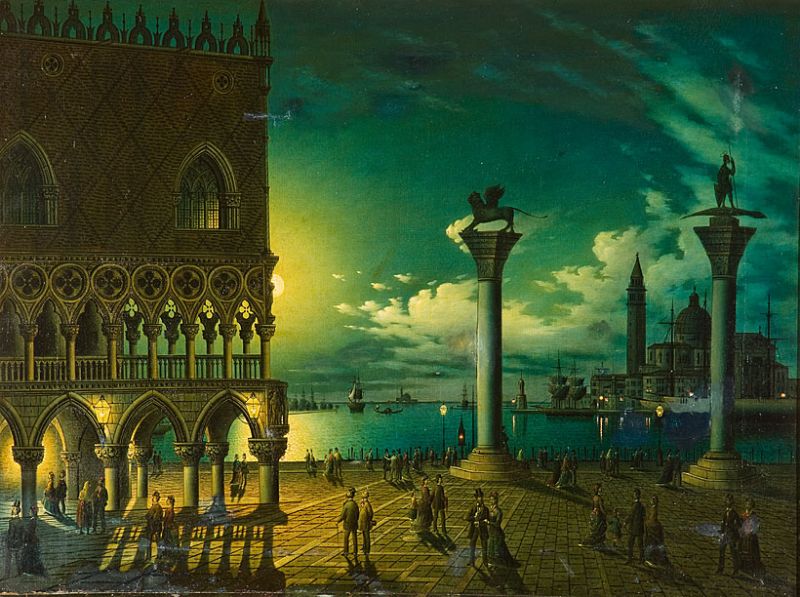 | Vollmond über der Piazetta in Venedig mit Blick auf Sta. Maria della Salute | |