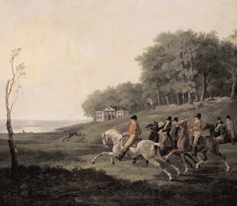 Jagdgesellschaft am Meer.
