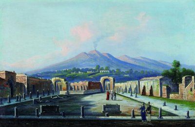 Die Ruinen von Pompeji mit dem Vesuv im Hintergrund