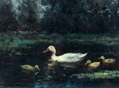 Eend met vier kuikens.