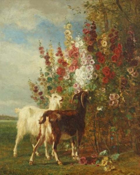 Les chevres dans les roses tremieres