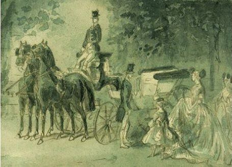 | Calèche au bois, retour de la promenade | |