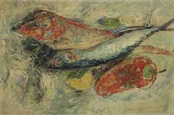 | A still life with fish, lemon and red pepper | |