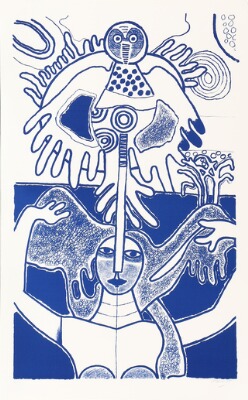 Composition with bird and woman.