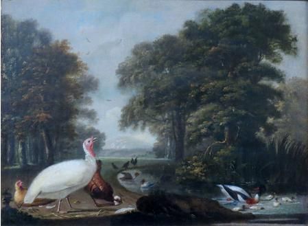 | A White Turkey Cock, Chickens and Ducks in a Landscape | |