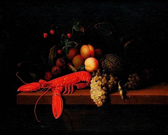 NATURE MORTE AU HOMARD ET FRUITS SUR UN ENTABLEMENT