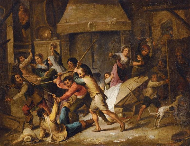 TAVERN INTERIOR WITH BOORS FIGHTING