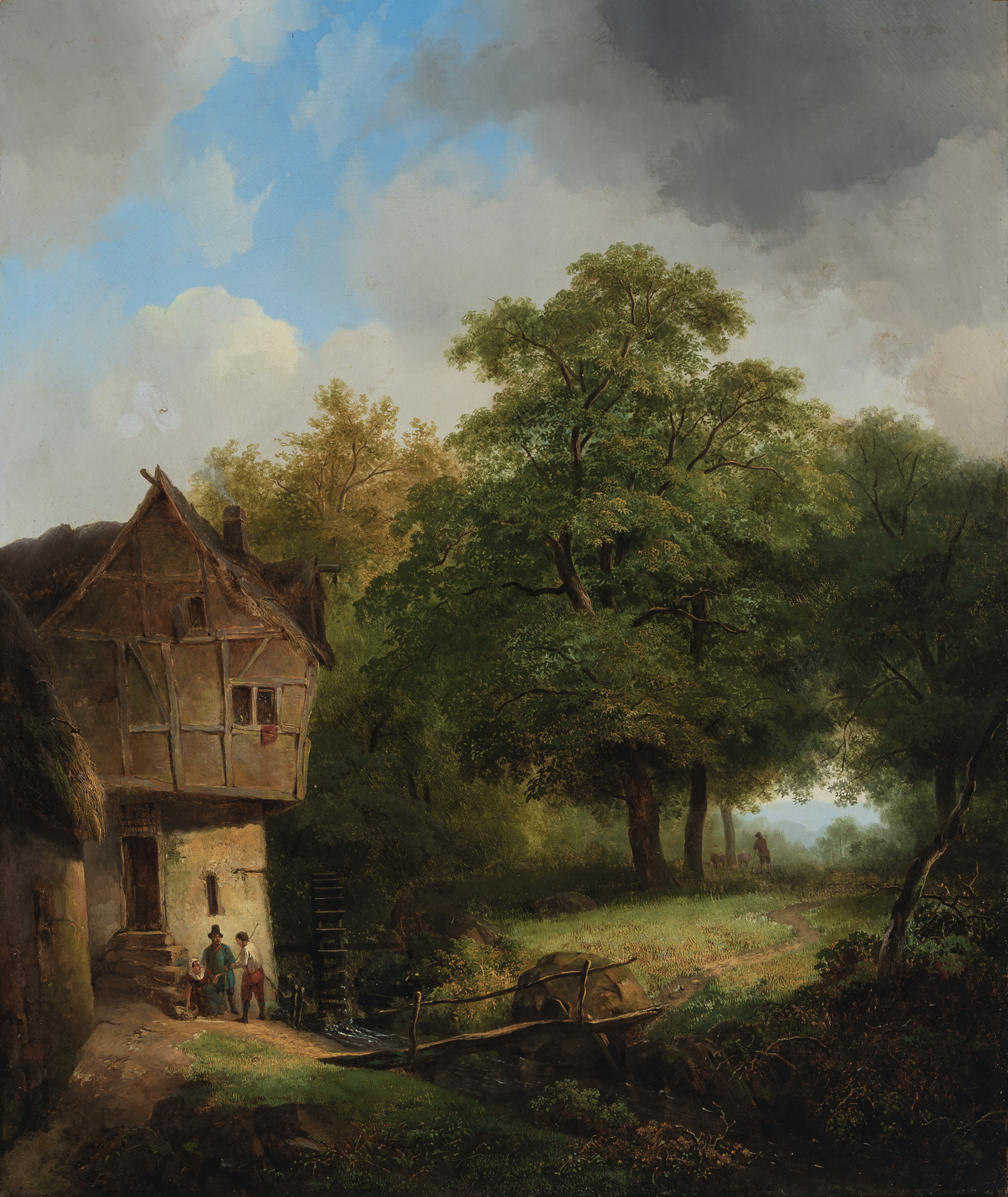 Peasants Conversing by the House in a Wooded Landscape (1837) Signed and dated 1837 on the rock lower left Oil on canvas, 95 x 79.2 cm * Please note: condition reports and additional photos are available upon request. For more information pl | |