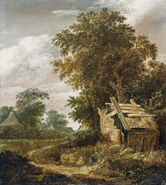 LANDSCHAFT MIT HÜTTE UND BAUERNHÄUSERN