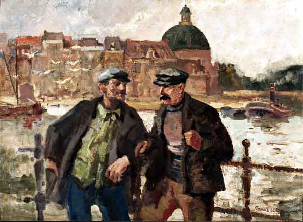 Twee arbeiders op de kade