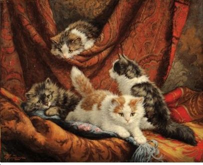 Chatons jouant avec les rideaux