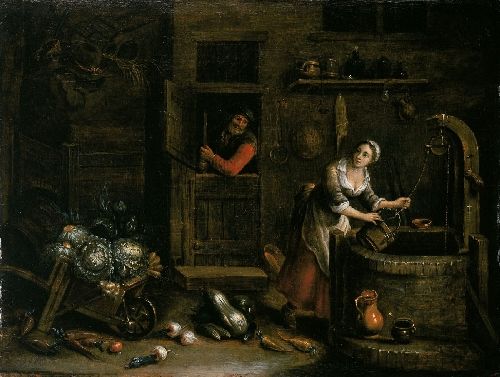 INTERIOR WITH WOMAN AT THE WELL