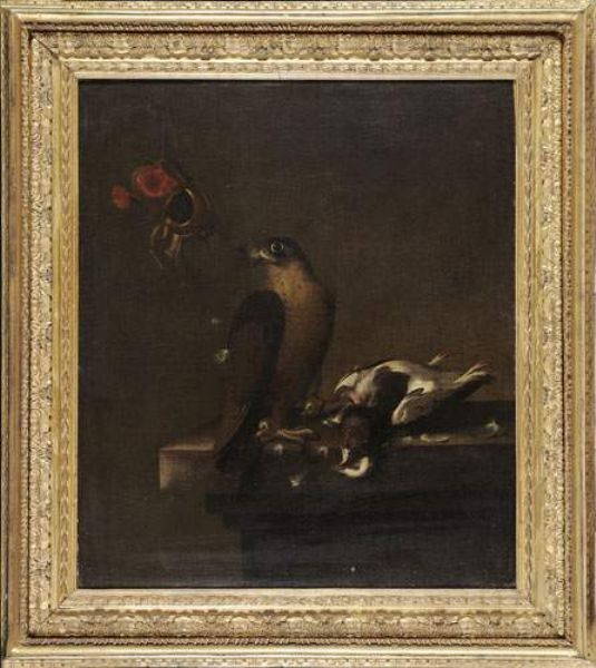 Faucon prés de son trophée de chasse