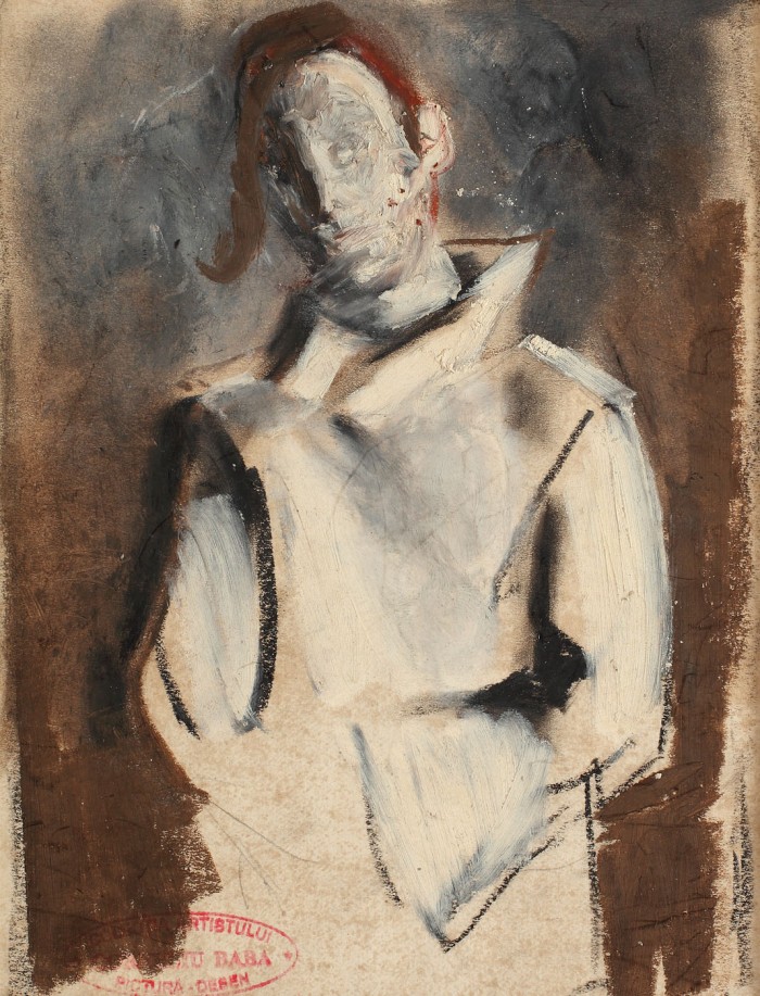 Gouache oil, wax crayons and charcoal on paper glued on cardboard