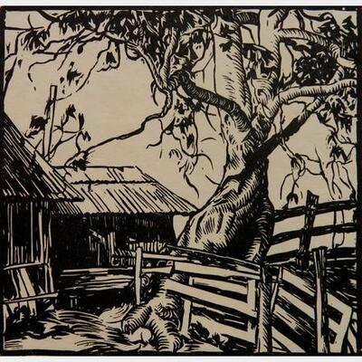 'Corner of The Coral''- linocut, signed and titled in pencil. 8 1/4 x 8 1/4'' | |