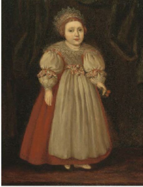 | Portrait of Isabella Buxton as a young girl, full-length, in a red dress with a lace collar, holding cherries | |