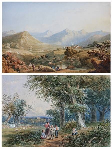 Travellers before a mountain landscape