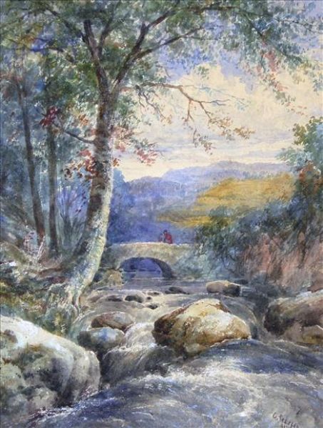 Figures On A Stone Bridge Above A Cascade