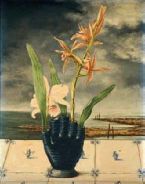 Vase d’orchidées sur faïence de Delft