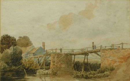 A LANDSCAPE WITH FIGURES ON A BRIDGE