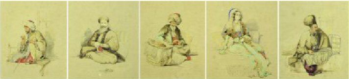 | Turc assis au café, un iman, un fumeur de chibouk, une dame de qualité, un fumeur de chibouk | |